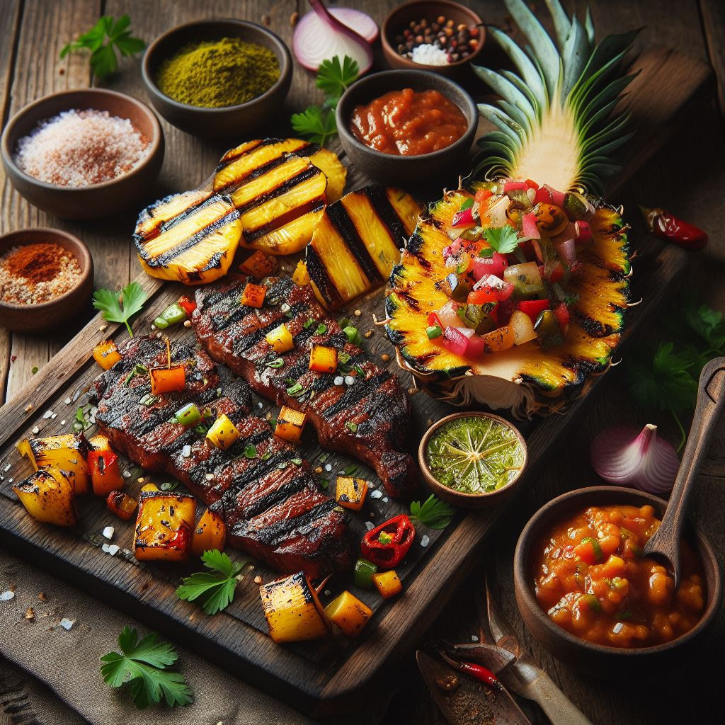 - Prepare the salsa: Cut pineapple into medium chunks. Heat a grill pan over medium-high heat. Grill pineapple, onion, and bell pepper until charred and softened, about 5-7 minutes per side. Transfer to a bowl, add jalapeño (if using), cilantro, lime juice, paprika, salt, and pepper. Stir to combine and set aside.